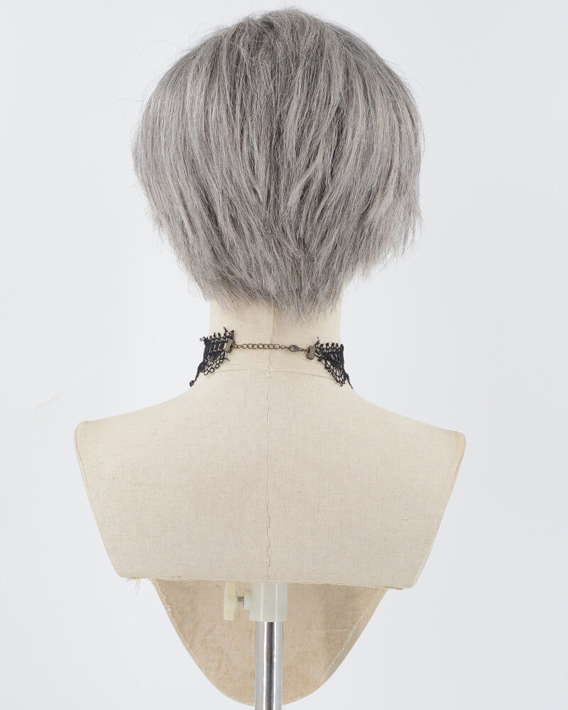 Pixie Cut Grey Mixed Human Hair Wig HT033