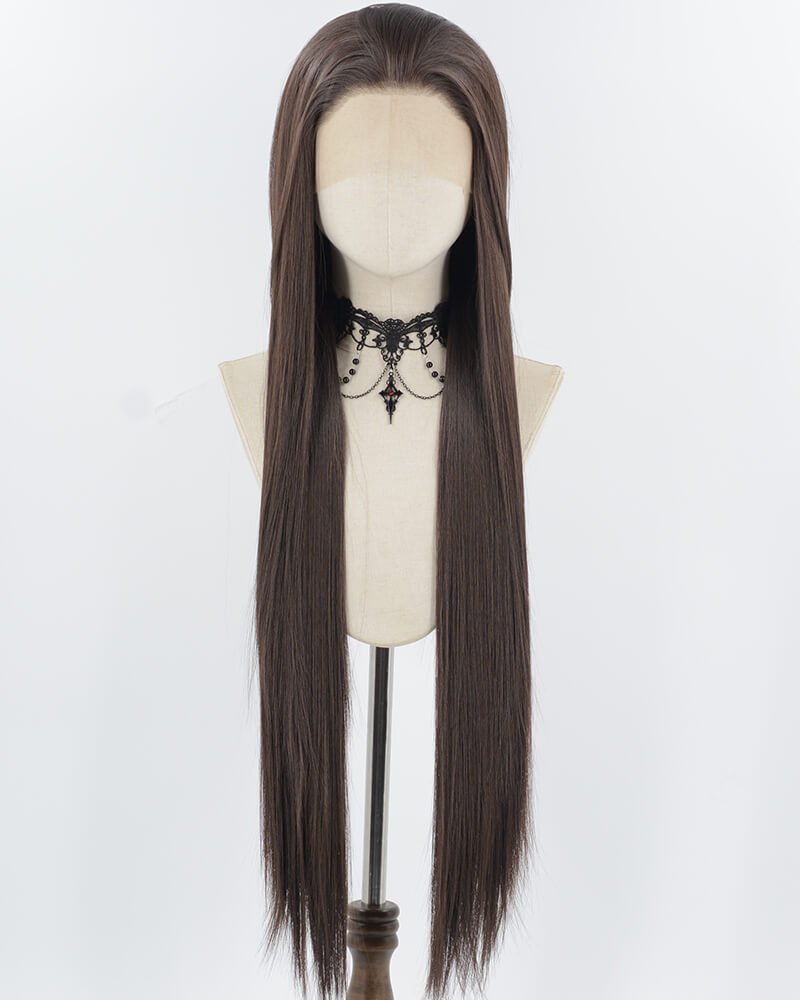 30Inch Long Dark Brown Synthetic Lace Front Wig WW964