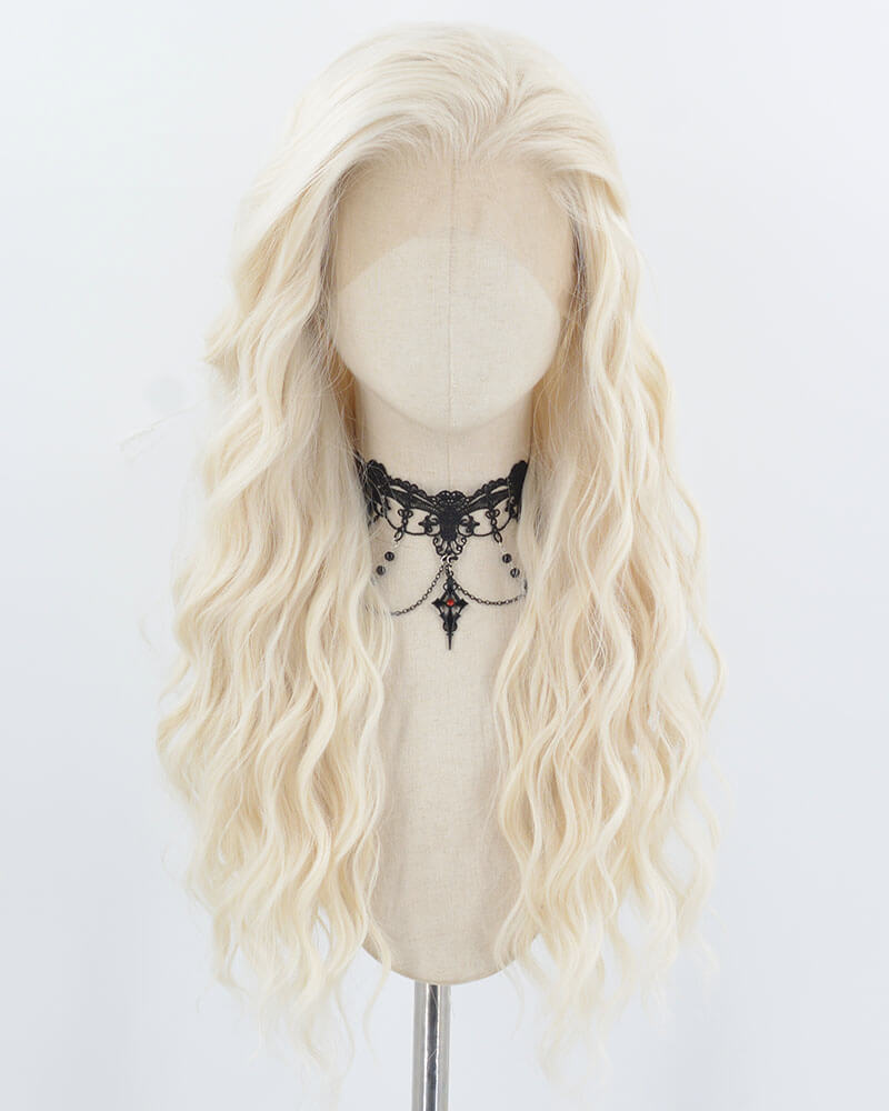 Long Platinum Blonde Synthetic Lace Front Wig WT190
