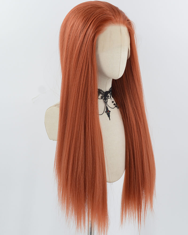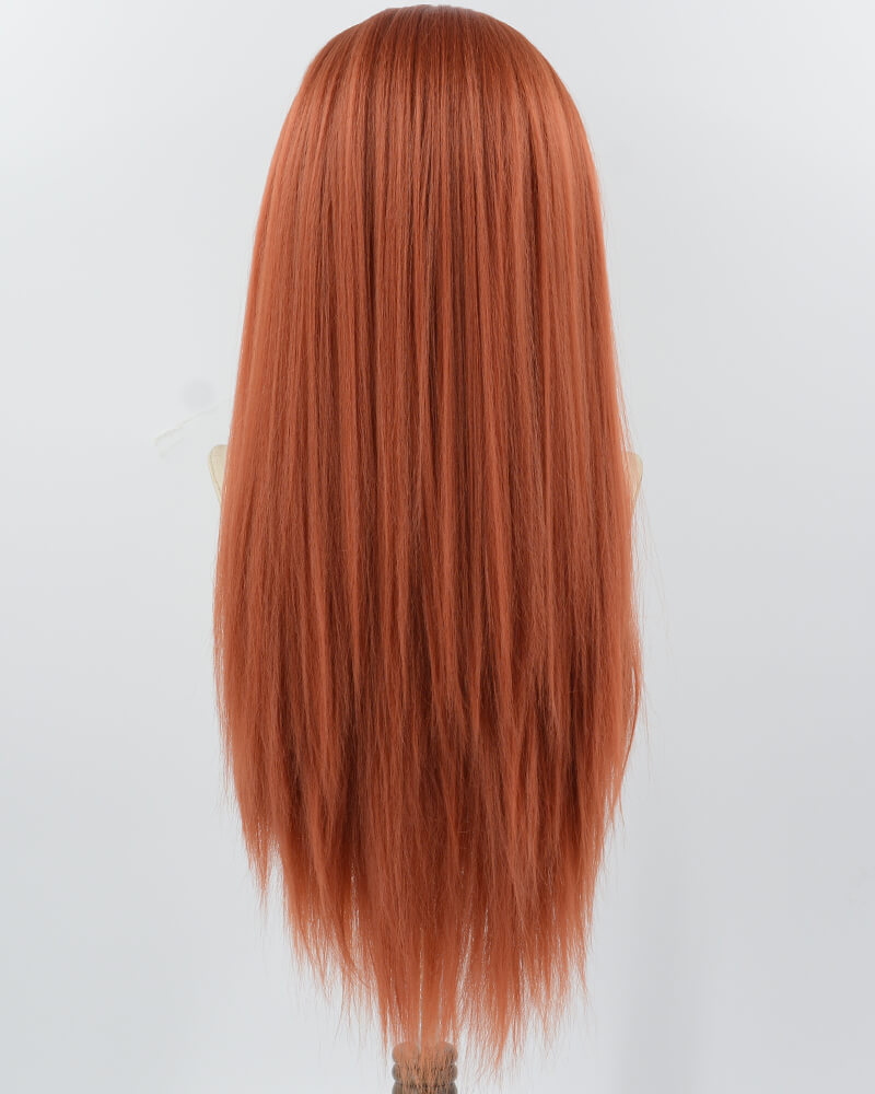 Long Copper Red Yaki Straight Synthetic Lace Front Wig WT028