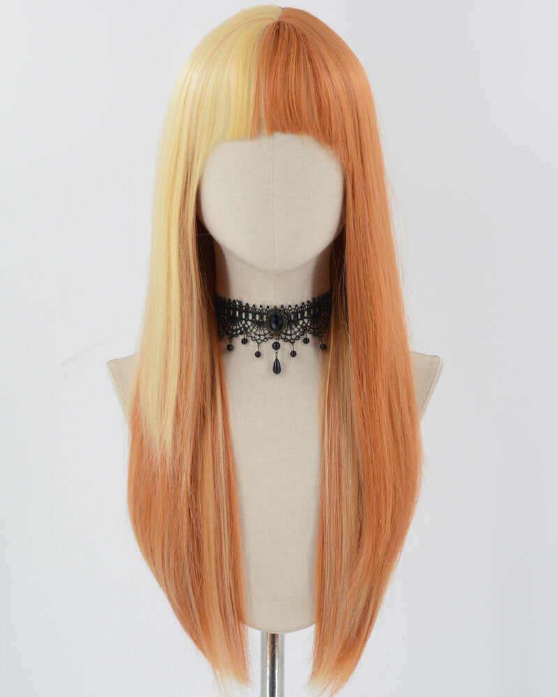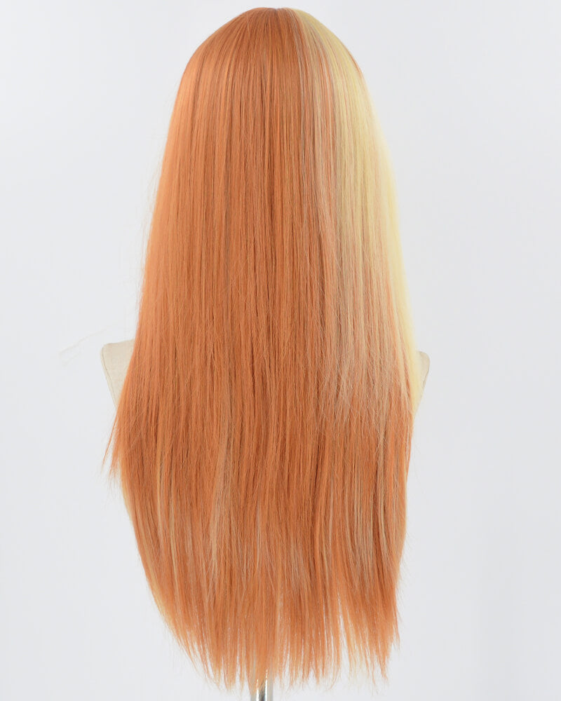 Orange Yellow Blonde Long Straight Synthetic Wig HW573