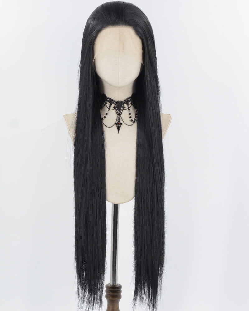 30Inch Long Black Synthetic Lace Front Wig WW965