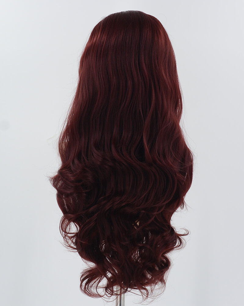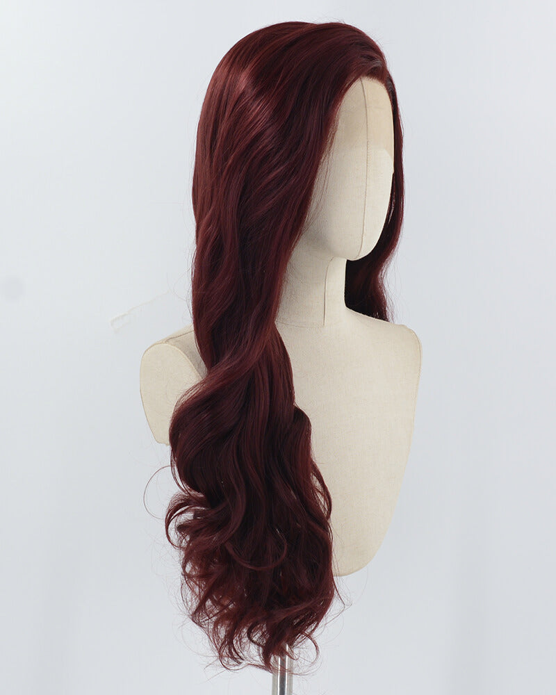 Wine Red Long Wavy Synthetic Lace Front Wig WW926